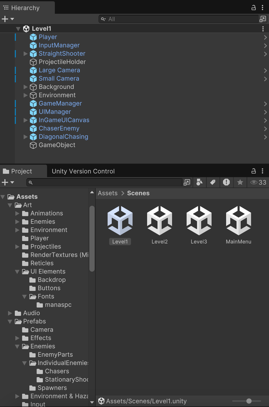 - Levels: Level 2 includes additional and also faster enemies with a higher score when defeating them; Level 3 includes more and even faster moving enemies